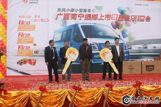 2012年11月25日,“東風(fēng)小康小型客車C37南寧震撼上市暨品鑒樂購會(huì)”在廣西汽車交易市場內(nèi)隆重舉行;顒(dòng)現(xiàn)場發(fā)布的東風(fēng)小康C37是行業(yè)最高端的小型客車,其搭載了高性能的1.3升VVT汽油機(jī),該車底盤、車身均代表了行業(yè)最先進(jìn)的一代技術(shù)水平,內(nèi)飾及其他配置完全可以與商務(wù)車媲美。東風(fēng)小康此此共發(fā)布了售價(jià)從4.5-6.18萬元的5種配置的C37車型,適合“一車三用”和“一車多用”的不同訴求的人群。此次活動(dòng)同時(shí)邀約東風(fēng)小康潛在用戶和媒體朋友的參加,主辦方在現(xiàn)場安排了精彩的節(jié)目表演,通過趣味品鑒的形式,親身體驗(yàn)C37獨(dú)特的魅力,使參與者更加深刻地了解C37“一車三用,大不一樣”的產(chǎn)品獨(dú)特特性。