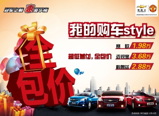 年底臨近,正是不少消費者準備入手一款好車的時節(jié)。江湖傳說1萬買A0級車,2萬買A+級車,3萬買B級車?近日,記者獲悉,雪佛蘭正在進行的“冠軍之師,匯聚華南•歲末購車季”活動,邁銳寶、科魯茲、新賽歐不僅推出2013款冠軍版車型,外觀內(nèi)飾配置全面升級,全系在售車型更分別以3.68萬、2.88萬、1.98萬“車價+買車購置稅+保險費+上牌費”的超低首付全包價回饋廣大華南消費者。
