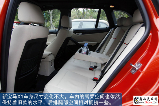 新寶馬X1車(chē)身尺寸變化不大,車(chē)內(nèi)的駕乘空間也依然保持著舊款的水平。既然是緊湊級(jí)的小車(chē),只要不對(duì)X1的車(chē)內(nèi)空間奢望太高,它也不會(huì)讓我們失望,雖然后排腿部空間比較局促,不過(guò)只要不是長(zhǎng)途乘坐,空間上還是可以接受的。