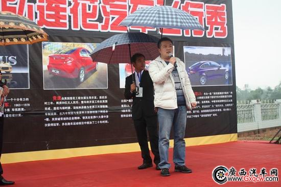 12月1日,蓮花汽車極限特技飛行秀在南寧高新區(qū)隆重舉行,雖然天空下起很大的雨,還帶著冬天的寒冷,但還是抵擋不住眾多蓮花汽車車友們的熱情,紛紛冒雨前來,為的就是一睹蓮花汽車的真實風采,體驗休驗蓮花汽車的超強的性能和超高的性價比;顒油瑯游四蠈10余家汽車主流媒體的強烈關注,據(jù)了解,當天參加飛行秀的有蓮花汽車新老車主、意向客戶、汽車愛好者、媒體記者共計近百人。