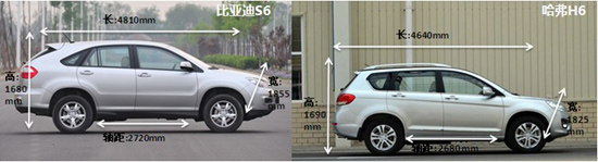 再來(lái)看看二者的空間表現(xiàn),比亞迪S6的整車尺寸分別為4810mm*1855 mm *1680 mm,軸距為2720mm;哈弗H6的整車尺寸為4640mm*1825 mm *1690 mm,軸距為2680mm。單從數(shù)據(jù)上來(lái)看,比亞迪S6完勝哈弗H6,在影響車內(nèi)駕乘空間舒適度的關(guān)鍵指標(biāo)方面都比較有優(yōu)勢(shì)。實(shí)際表現(xiàn)也是如此,坐在比亞迪S6內(nèi)部,可以明顯感受到腿部、頭部以及后排座椅都還留有較大的活動(dòng)空間。端坐在哈弗H6中,若想像在S6車內(nèi)那樣隨意變換乘坐姿勢(shì)則不是很現(xiàn)實(shí)。