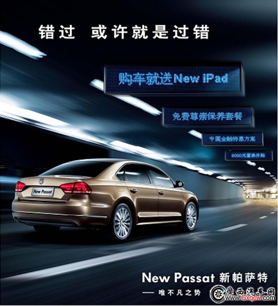 禮遇一:購(gòu)車(chē)即贈(zèng)New iPad,更可獲贈(zèng)5萬(wàn)公里“暢行無(wú)憂”尊崇保養(yǎng)套餐;如置換新帕薩特,額外再享8000元現(xiàn)金折讓。