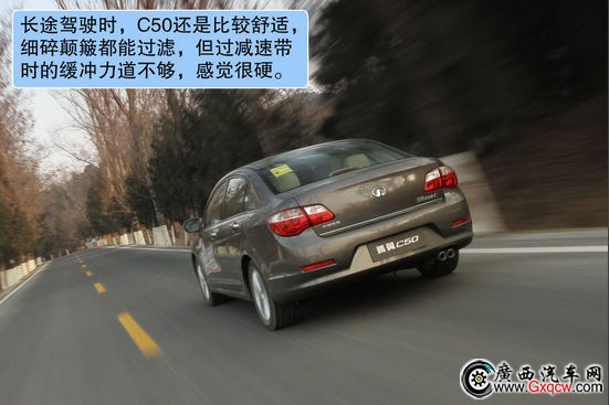 長城C50駕駛起來可以明顯感受到底盤很穩(wěn)健扎實,這在自主品牌中可謂是難得的基本功。即便是模仿,但也算一種極大進步。減震筒和彈簧分離的結(jié)構(gòu),也便于適應(yīng)更復(fù)雜的路況要求。為了提供更好的車身支撐,C50懸掛調(diào)校比較硬朗,支撐性雖然不錯,但也降低了部分舒適性。而高速路況而言,即便超過120公里時速,配合沉穩(wěn)方向手感,C50也不會輕易發(fā)飄,目前能做到這點的自主品牌車型并不多見。