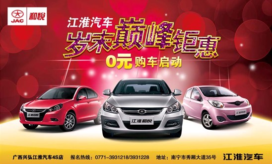 3、為慶祝2013年元旦,江淮推出“0”元購車計劃,活動期間江淮瑞鷹“0”元帶回家