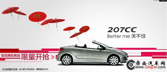 12月24日,標致207CC自動擋車型將正式登陸國內(nèi)市場,屆時標致汽車將聯(lián)合騰訊網(wǎng),以騰訊微博及騰訊商城為平臺,展開網(wǎng)絡上市和首發(fā)限量搶購活動。車主只需預付1000元便可獲得標致207CC線下購買權,限量20臺先搶先得。