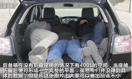 行李箱在沒有折疊座椅時有400L的空間,當座椅折疊后,可以形成一個完整的平面,雖然我們并沒得到具體的數(shù)據(jù),但是從這張圖片上大家可以看出應(yīng)該不小。更加人性的是在行李箱左右還各有一個拉手,可以從后面方便的放倒座椅,這點和英菲尼迪的EX35極為類似,這樣就不怕拿著大件行李再去前面放倒座椅了。