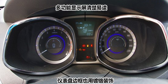 炮筒式的儀表盤邊框處加入了鍍鉻裝飾,搭配上藍(lán)色的燈光,運(yùn)動(dòng)感突出。多功能顯示屏非常清楚,能提供不少車輛信息。