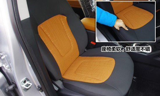 織物座椅采用橙色和黑色相間的設(shè)計(jì),顯得年輕運(yùn)動(dòng),手感柔軟,乘坐的舒適度表現(xiàn)也不錯(cuò)。