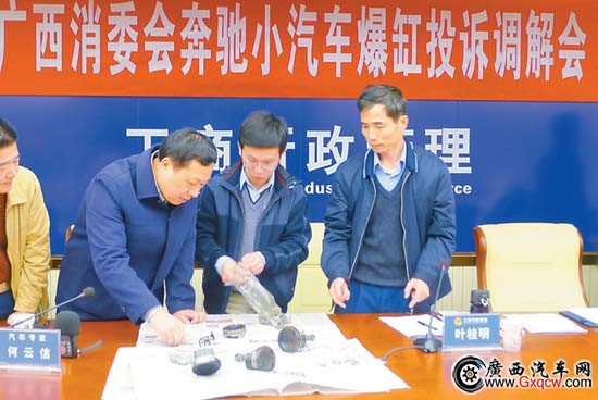 1月23日,廣西消委會(huì)組織了一次奔馳小汽車爆缸投訴調(diào)解會(huì)。