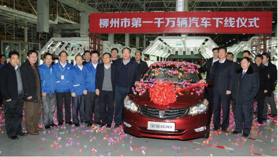1000萬輛——12月27日,隨著柳州市委書記陳剛宣布:“柳州市第1000萬輛汽車下線”,一輛紅色寶駿630從公司西部總裝車間緩緩下線,標志著柳州市第1000萬輛汽車誕生。值得每個上汽通用五菱人驕傲的是,在這1000萬輛汽車中有850萬來自五菱制造。
