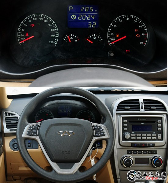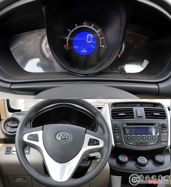 方向盤和儀表盤,兩車方向盤都采用了三輻設(shè)計,力帆X60握起來手感要比瑞虎好,而瑞虎多功能鍵盤上配置了音響控制按鍵,比力帆X60厚道。瑞虎采用的儀表盤比較簡單,普通的黑底白字紅指針,而力帆X60采用了單炮筒式液晶儀表盤,數(shù)字顯示模式的車速表給整個布局加了不少分,整體感覺,力帆X60更勝一籌。