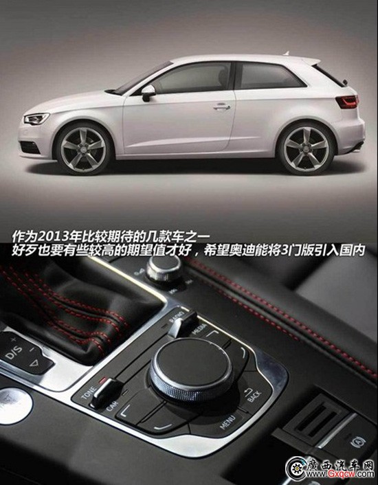 新款?yuàn)W迪A3的圖片想必大家都看過了,作為2013年比較期待的幾款車之一,好歹也要有些較高的期望值才好,希望奧迪能將3門版引入國內(nèi)。