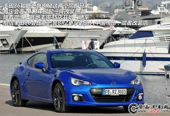 豐田86和斯巴魯BRZ這兩個(gè)同胞兄弟肯定會(huì)在2013年掀起一陣改裝熱潮,隨著微博上各地豐田4S店開始“曬車”,相信豐田86會(huì)比斯巴魯BRZ更早的進(jìn)入中國市場,或者改裝店。當(dāng)斯巴魯BRZ隨后拍馬趕到時(shí),這倆車誰的操控更好那么一點(diǎn)點(diǎn),誰的極限更高那么一點(diǎn)點(diǎn),都會(huì)是各位車迷、媒體人所津津樂道的事情。