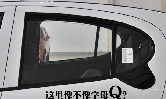 新QQ的車身側(cè)面是整車的亮點之一,后門把手設(shè)計的和前門不一樣,和后車窗是連在一起的,整體看上去像一個字母“Q”,很有特點。而比亞迪F0的前門比較大,所以側(cè)窗的面積也跟著增大,讓視野更加開闊。