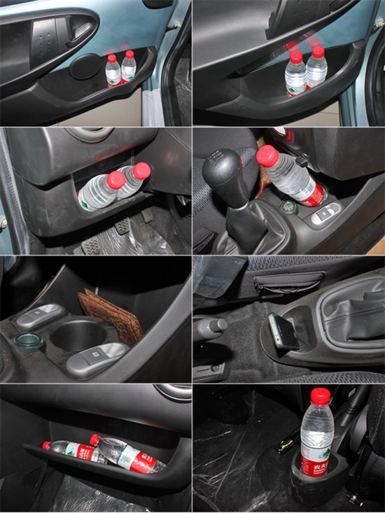 小儲(chǔ)物空間方面,新QQ前排的小儲(chǔ)物空間比較豐富,像方向盤的左下方、變速器前后方、中控臺(tái)上方等都有著不錯(cuò)的儲(chǔ)物能力,后排就沒(méi)有這么給力了,在后排我們找不到任何地方放飲料瓶。而比亞迪F0前后排的儲(chǔ)物更平均一些,雖然前排不如新QQ,但是后排擁有一個(gè)杯架可以放飲料瓶,后排門板上也有儲(chǔ)物槽。