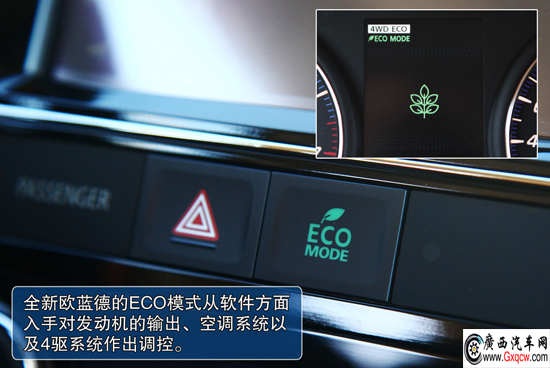 為了提升行車油耗,全新歐藍德還加入了ECO模式,開啟開關(guān)后,車輛的油門響應(yīng)會明顯變?nèi),同時空調(diào)以及四驅(qū)系統(tǒng)也會隨之進入節(jié)能狀態(tài)。從工信部的綜合油耗來看,全新歐藍德2.0L和2.4L車型的油耗分別是7.5L/100km和7.9L/100km,皆比歐藍德勁界同排量車型降低了1.4L/100km的油耗。