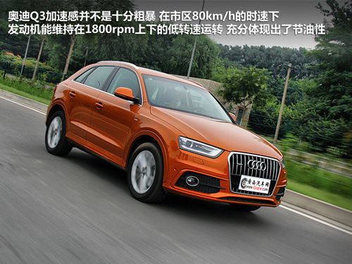 奧迪Q3高功版車型搭載了2.0 TFSI引擎,最大功率155千瓦,最大扭矩300牛米的,0-100公里加速僅為6.9秒。同時(shí)該款發(fā)動(dòng)機(jī)還具備了燃油經(jīng)濟(jì)的特性。在實(shí)際駕駛中,奧迪Q3加速感并不是十分粗暴,在市區(qū)80km/h的時(shí)速下,發(fā)動(dòng)機(jī)甚至仍能維持在1800rpm上下的低轉(zhuǎn)速運(yùn)轉(zhuǎn),充分體現(xiàn)出了節(jié)油性。而在運(yùn)動(dòng)模式下,引擎轉(zhuǎn)速會(huì)控制在3000rpm以上,同時(shí)油門相應(yīng)也比較敏感,可以讓你充分的體會(huì)到“運(yùn)動(dòng)”這個(gè)詞。7速S tronic雙離合變速器(DCT)可以算是它的亮點(diǎn)之一,1擋至6擋齒比銜接緊密,第7檔能有效降低發(fā)動(dòng)機(jī)轉(zhuǎn)速以保證低油耗和低排放,與TFSI發(fā)動(dòng)機(jī)的達(dá)到了完美搭配。在“S”模式 下,配合上方向盤換擋撥片,駕駛員絕對(duì)會(huì)充分感受到Q3的動(dòng)感魅力。