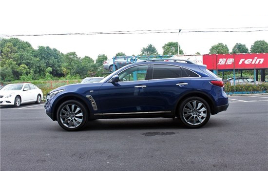 車身側面,低矮動感的風格在車身側面完全體現(xiàn)出來了,一條腰線從前門一直上揚延伸至車尾,給人帶來一種視覺的沖擊。車身長、寬、高分別為4732/1854/1680mm,軸距為2710mm,相對于同級別車型還是有競爭力的。而從側面可以看出,有點山寨英菲尼迪FX系列。
