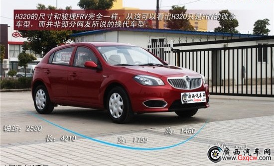 中華H320的長(zhǎng)、寬、高、軸距分別為4210/1755/1460/2580(mm),尺寸和駿捷FRV完全一樣,從這可以看出H320只是FRV的改款車型,而并非部分網(wǎng)友所說(shuō)的換代車型。