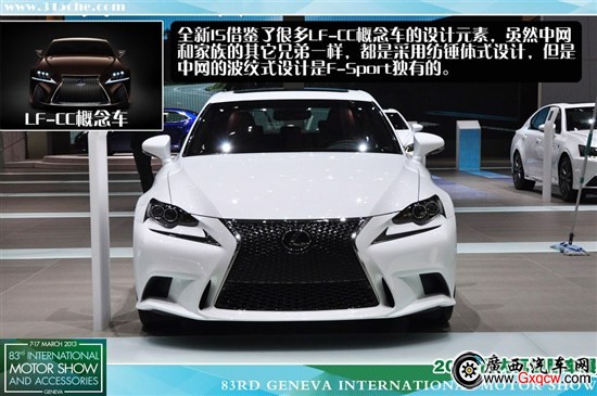 2013年,第83屆日內(nèi)瓦車展開幕,豐田旗下高端品牌雷克薩斯展出全新IS 300h F-Sport,這款新車主要是提供給那些喜歡運(yùn)動(dòng)化設(shè)計(jì),同時(shí)又希望帶有混合動(dòng)力版本車型的消費(fèi)者。