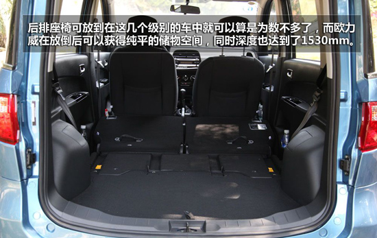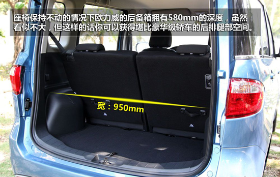 后備箱方面,歐力威擁有950mm的寬度,而深度則為580mm,當(dāng)然這是在您坐在后排可以輕松翹起二郎腿的情況下。如果將后排座椅調(diào)至最前方的話,后備箱的深度就會(huì)被拉長至780mm,并且可以進(jìn)行5:5比例的分配,對(duì)于物品的擺放十分靈活。