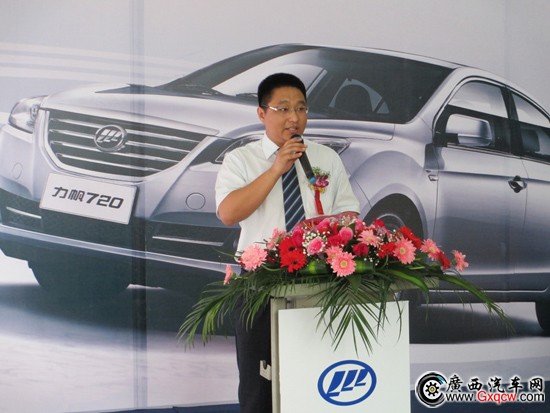 開天力帆4S店銷售經(jīng)理古女士與廠家領(lǐng)導一同為720揭幕