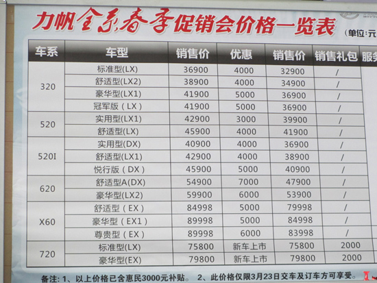 主營業(yè)務(wù):力帆全系轎車:620、720、X60 330、530、630