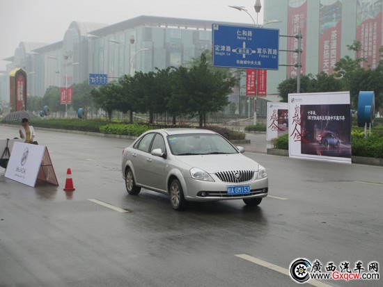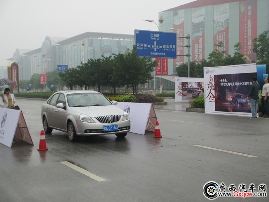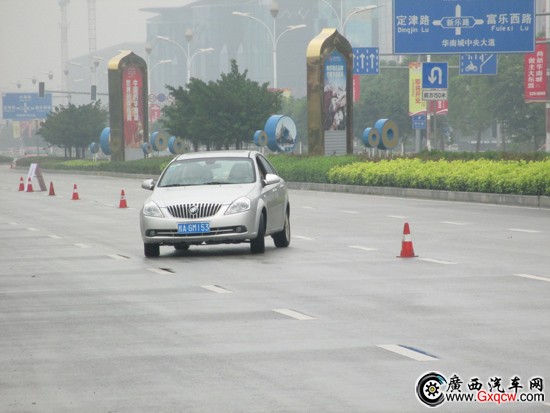 加速直角彎道:為了充足測試新凱越的操控性,所以主辦方特別設計了這么一個直角彎道,還必須是加速過程中通過。結果證明,新凱越在操控和懸掛的協(xié)調(diào)性方面做得還真不錯,加速急轉(zhuǎn)彎時,盡管路面當天下著小雨有點濕有點滑,但是車子沒有明顯甩尾感。