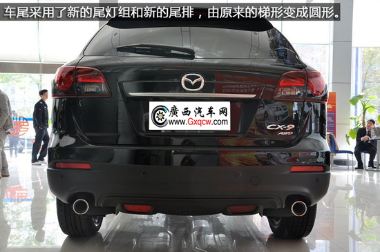 馬自達(dá)2013款CX-9該車(chē)采用了新的家族式前臉風(fēng)格。使其與馬自達(dá)最新的“魂動(dòng)”設(shè)計(jì)語(yǔ)言保持一致性。新車(chē)采用了CX-5的格柵,兩側(cè)為“天使眼”大燈,下面是流線形霧燈。車(chē)尾采用了新的尾燈組和新的尾排,由原來(lái)的梯形變成圓形。