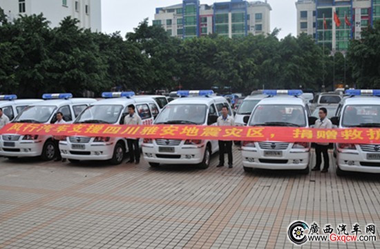 4月23日下午,柳州乘龍廣場,由東風(fēng)柳州汽車有限公司捐贈給四川省衛(wèi)生廳的10臺風(fēng)行菱智,在簡短的捐贈儀式后,迅速被運往四川雅安地震災(zāi)區(qū),用于賑災(zāi)一線的轉(zhuǎn)運型醫(yī)療救護。
