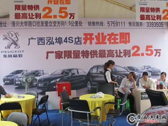 經(jīng)過了解得知,南寧弘埠4S店是東風(fēng)標致在南寧市的第三家4S店,此次的車展是繼北部灣車展后的第二次在這么大的場合公開亮相,為了提前預(yù)祝該店在5月11日的正式開業(yè),廠家給予了大力支持,所以本次車展放出了比平時大很多的優(yōu)惠。