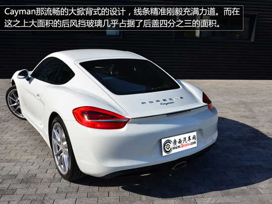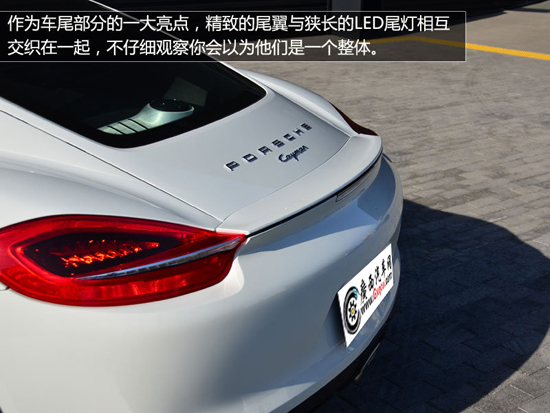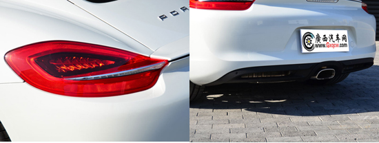 車尾部分最直觀的就是Cayman那流暢的大掀背式的設(shè)計,線條精準剛毅充滿力道。而在這之上大面積的后風(fēng)擋玻璃幾乎占據(jù)了后蓋四分之三的面積,這在保時捷家族中也是十分少見的。在玻璃下端是幾乎是一成不變,為按放鍍鉻PORSCHE名牌所保留的位置。