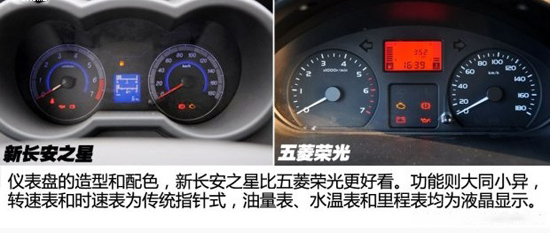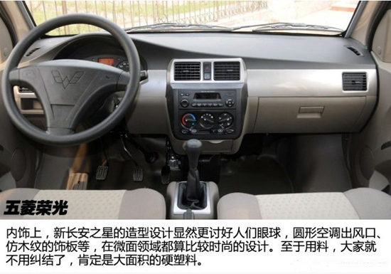 中控臺造型方面,新長安之星看著明顯比五菱榮光更漂亮,立體感也更強,可以說給人的第一感覺已經(jīng)和5-6萬元的自主品牌轎車不相上下了。而反觀五菱榮光的內(nèi)飾,整體造型就比較平庸。