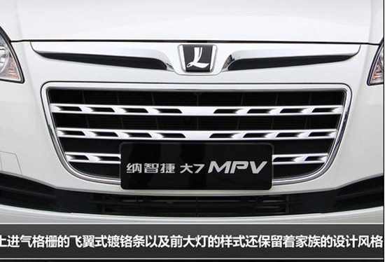 在外觀的造型設計上,大7 MPV的外形與納智捷旗下另一款車型MASTER CEO的樣式相似,或者說大7 MPV是MASTER CEO的7座版也并不過分。前臉設計并不復雜,對于這種商務用車來說,簡潔大氣的設計對氣質的提升還是有所幫助的。