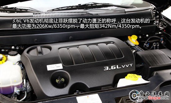 實(shí)拍車型搭載了一臺3.6L V6發(fā)動機(jī),最大功率206Kw/6350rpm,最大扭矩342Nm/4350rpm,讓菲躍徹底擺脫了動力匱乏的稱呼。與之匹配的仍是6速手自一體變速箱。