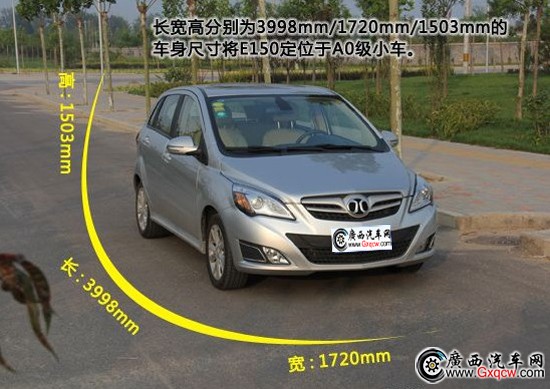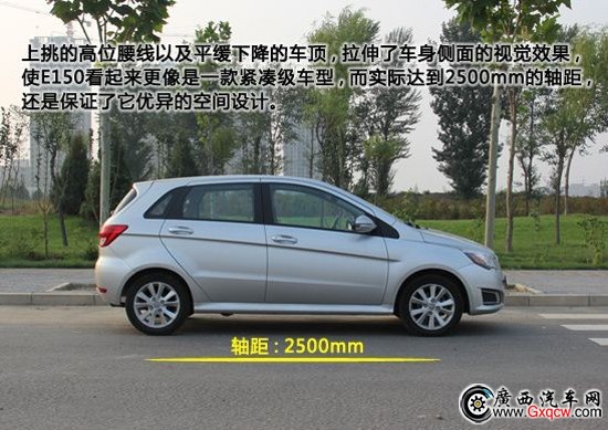 長寬高分別為3998mm/1720mm/1503mm的車身尺寸將E150定位于A0級小車。上挑的高位腰線以及平緩下降的車頂,拉伸了車身側(cè)面的視覺效果,使E150看起來更像是一款緊湊級車型,而實(shí)際達(dá)到2500mm的軸距,還是保證了它優(yōu)異的空間設(shè)計(jì)。