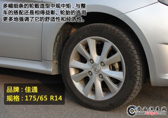 多幅細(xì)條的輪轂造型中規(guī)中矩,與整車的搭配還是相得益彰。輪胎選自佳通輪胎,175/65 R14的規(guī)格,更多地強(qiáng)調(diào)了它的舒適性和經(jīng)濟(jì)性。