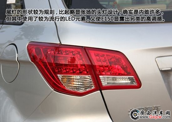 略為平直的尾部設(shè)計(jì),使E150又有著些MPV車型的特點(diǎn),也為后排乘客預(yù)留了充足的頭部空間。尾燈的形狀較為規(guī)則,比起略顯張揚(yáng)的頭燈設(shè)計(jì),確實(shí)是內(nèi)斂許多,但其中使用了較為流行的LED元素,又使E150顯露出另類的高調(diào)感。