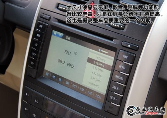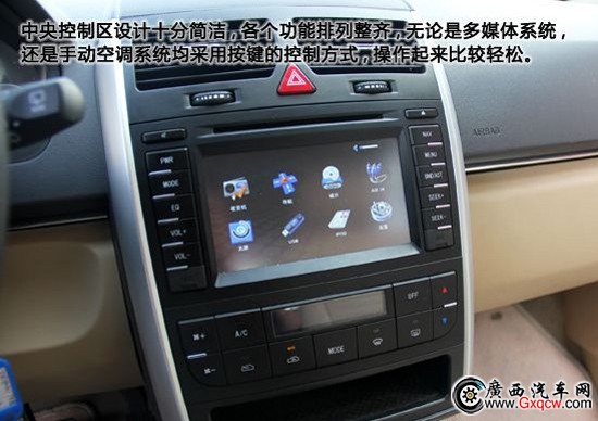 中央控制區(qū)設(shè)計(jì)十分簡(jiǎn)潔,各個(gè)功能排列整齊,無(wú)論是多媒體系統(tǒng),還是手動(dòng)空調(diào)系統(tǒng)均采用按鍵的控制方式,操作起來(lái)比較輕松。E150配備了一塊大尺寸液晶顯示屏,影音、導(dǎo)航等功能配備比較豐富,只是在屏幕分辨率有待提高,這也是提高整車(chē)品質(zhì)重要的一個(gè)因素。除了常見(jiàn)的AM/FM及CD外,E150還裝備了USB和AUX IN插口,這兩項(xiàng)配置在如今科技發(fā)達(dá)的時(shí)代還是非常實(shí)用的。
