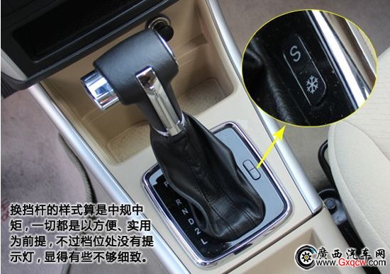 換擋桿的樣式算是中規(guī)中矩,一切都是以方便、實(shí)用為前提,不過(guò)檔位處沒(méi)有提示燈,顯得有些不夠細(xì)致。