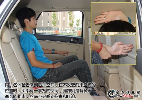 雖然E150定位是A0級(jí)別車型,但它的乘坐空間在同級(jí)別車中算是優(yōu)秀的,甚至是可以和緊湊車型媲美。身高168cm的體驗(yàn)者進(jìn)入駕駛座椅,頭部和腿部都有較大的富余空間。頭部距離車頂有兩拳的余量,就算是身材高大的車主也可輕松進(jìn)出和駕駛車輛。同一名體驗(yàn)者來到后排空間,在不改變前排座椅的位置時(shí),頭部有一掌寬的空間,腿部則是有多于一掌長(zhǎng)的距離,絲毫不會(huì)使后排乘客感到拘束和壓迫。