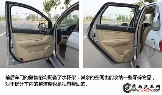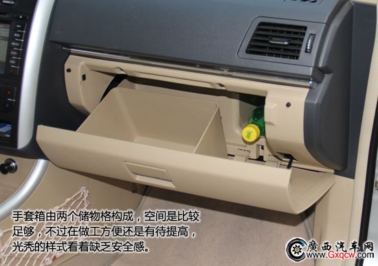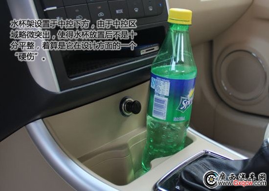 對(duì)于E150的儲(chǔ)物空間,可以用夠用來形容,不會(huì)令人感到驚喜,但也不會(huì)令人失望。手套箱由兩個(gè)儲(chǔ)物格構(gòu)成,空間是比較足夠,不過在做工方便還是有待提高,光禿的樣式看著缺乏安全感。水杯架設(shè)置于中控下方,由于中控區(qū)域略微突出,使得水杯放置后不是十分平整,著算是它在設(shè)計(jì)方面的一個(gè)“硬傷”。