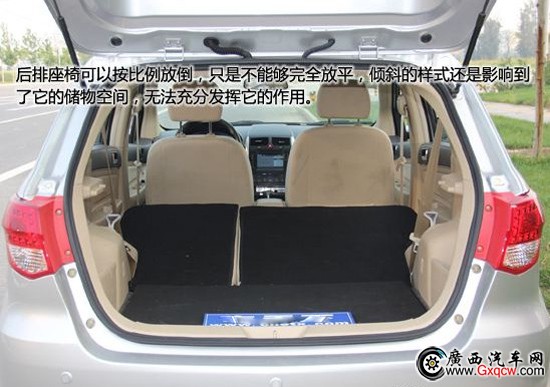 行李箱的容積能夠完全滿足日常的使用,就算是經(jīng)歷了一次瘋狂采購(gòu)后,它也是可以輕松應(yīng)對(duì)的。懸掛系統(tǒng)占據(jù)了行李箱兩側(cè)的部分空間,但設(shè)計(jì)師卻將它設(shè)計(jì)成兩個(gè)儲(chǔ)物格,不僅使行李箱內(nèi)部更加平整,也適當(dāng)?shù)卦黾恿怂膬?chǔ)物空間。后排座椅可以按比例放倒,只是不能夠完全放平,傾斜的樣式還是影響到了它的儲(chǔ)物空間,無法充分發(fā)揮它的作用。