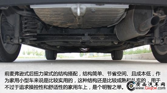 北汽E系列的懸架為前麥弗遜式后扭力梁式的結(jié)構(gòu)搭配,在小型車中比較普遍,這種懸架的優(yōu)點(diǎn)就是結(jié)構(gòu)簡(jiǎn)單、節(jié)省空間、且成本低,作為家用小型車來(lái)說(shuō)是比較實(shí)用的。當(dāng)然,這種結(jié)構(gòu)還是比較成熟和扎實(shí)的,用于不過(guò)于追求操控性和舒適性的家用車上,是個(gè)明智之舉。