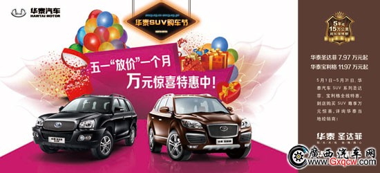 活動(dòng)內(nèi)容:SUV購車節(jié) 買華泰圣達(dá)菲、寶利格即享萬元驚喜
