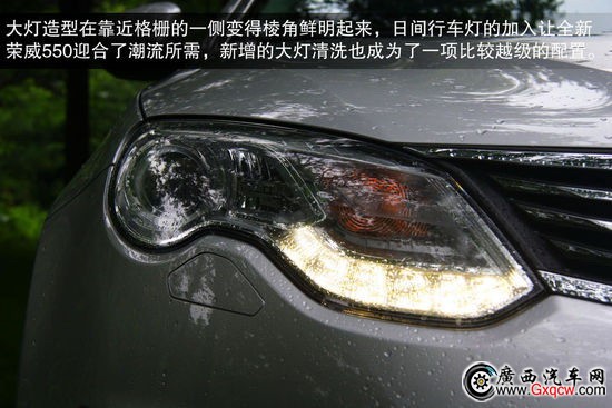 最明顯能被看出的改變當(dāng)屬大燈造型的改變,之前的花生殼式的大燈造型顯然不能滿(mǎn)足設(shè)計(jì)師對(duì)全新榮威550的需求,因此大燈造型在靠近格柵的一側(cè)變得棱角鮮明起來(lái),日間行車(chē)燈的加入也讓全新榮威550再一次迎合了潮流所需,而新增的大燈清洗也成為了全新榮威550上的一項(xiàng)比較越級(jí)的配置。