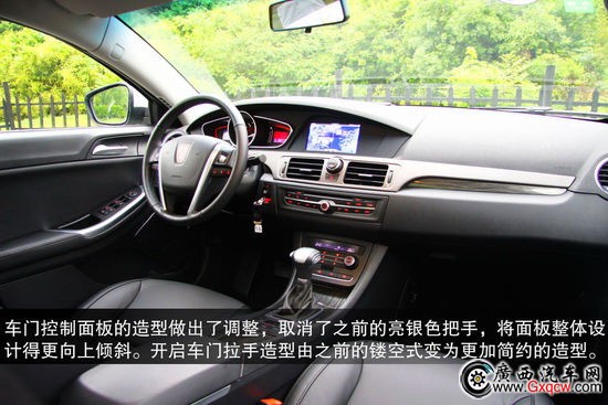 仔細觀察后我們還能發(fā)現(xiàn),全新榮威550上取消了空調(diào)兩側(cè)的金屬包邊,這也讓中控臺的整體感變得更強。此外,車門控制面板的造型也做出了調(diào)整,取消了之前的亮銀色把手,將面板整體設計得更向上傾斜,更加便于操作。開啟車門的拉手造型也發(fā)生了全新的改變,由之前的環(huán)形鏤空式變?yōu)榱烁雍喖s的造型。