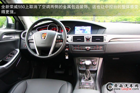 坐入駕駛室,從內(nèi)飾的改變上可以看出廠家在全新榮威550上確實表現(xiàn)出了足夠的誠意,整體抬高的中控臺讓駕駛員和乘客更容易操控車內(nèi)的各項功能,中央出風口右側(cè)的飾條造型在老款車型平直橫線的基礎上加入了一定的曲線修飾,并且材質(zhì)采用了立體拉絲處理的面板,無論從視覺效果還是觸感上都表現(xiàn)的十分出色。
