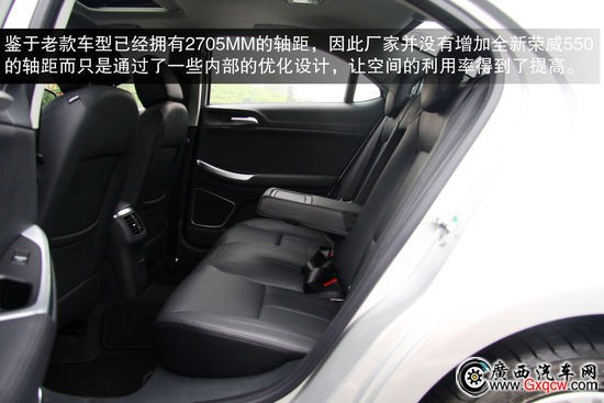 鑒于老款車型已經(jīng)擁有2705MM的軸距,因此廠家并沒有對全新榮威550的軸距進行增加而只是通過了一些內(nèi)部的優(yōu)化設計,讓空間的利用率得到了進一步的提高,進過優(yōu)化之后的全新榮威550的儲物空間增加到了24處,并且多處儲物空間的大小都有了增加。