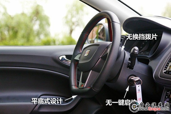 平底的方向盤雖說尺寸偏大,但是打孔真皮的設(shè)置具備相當不錯的手感,特別是方向盤并不算粗,能容易握緊,倒是適合較為激烈的駕駛。不過最令我遺憾的還是缺失了方向盤換擋撥片的功能,畢竟伊比颯采用雙離合變速箱,本身具備較為迅捷的換擋速度,單純靠程序自動換擋還是會缺少那么點樂趣。